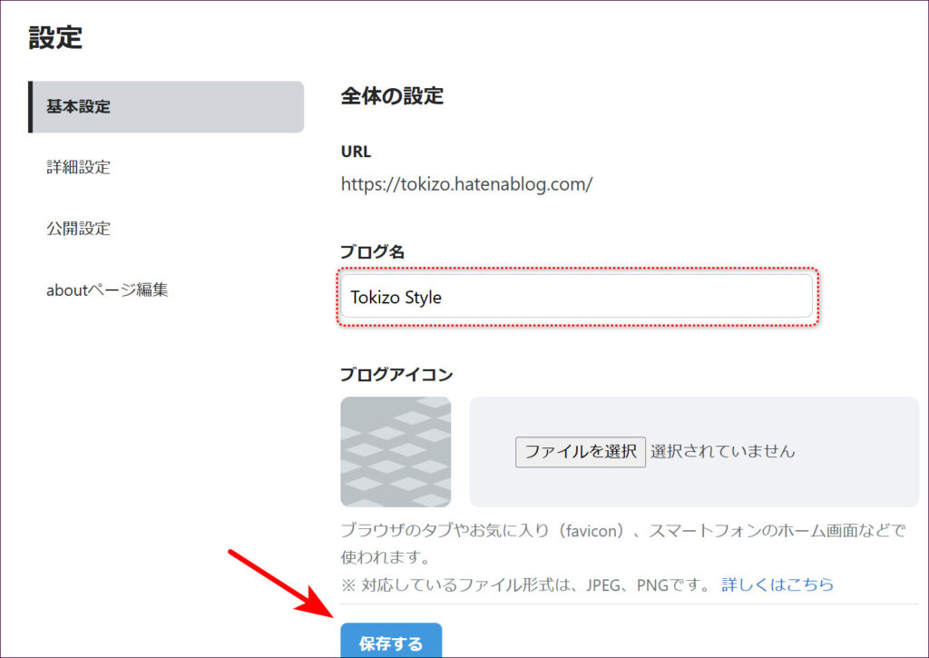 設定画面が表示されます。「ブログ名」の入力欄に入力されたものが、ブログのタイトルになります。