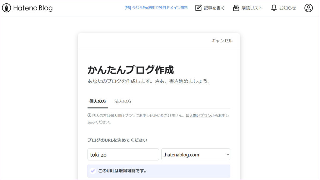 「サブドメイン」には、デフォルトでユーザーのはてなIDが入っていますが、利用したいURLに自由に変更できます。ただし、ドメイン名のルールにより以下の制限があります。
