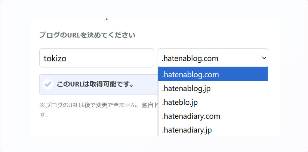 「はてなで用意しているドメイン」として、次の5つから選択できます。