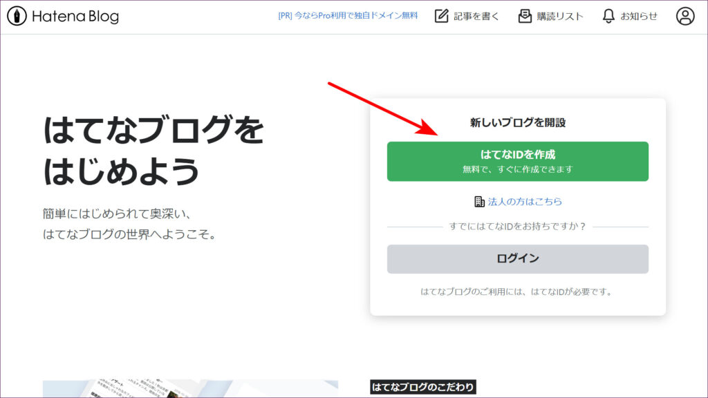 Googleで「はてなブログ」と検索して、はてなブログにアクセスします。