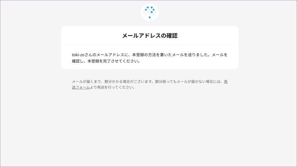 「メールアドレスの確認」画面が表示されたら、メールを確認します。